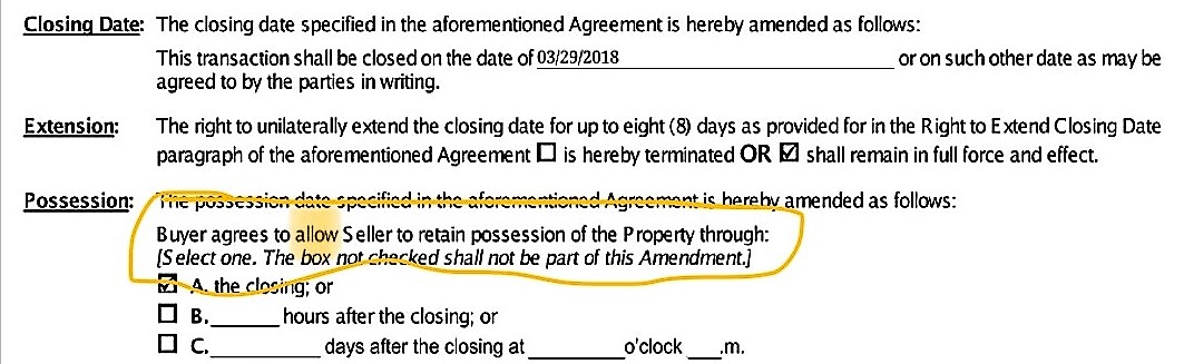 “Buyer agrees to allow Seller to retain possession of the Property through closing.”