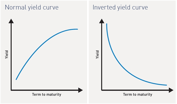 The term describes a particular phenomenon that happens when we look at the yields on bank and government bonds when plotted on a growth curve.